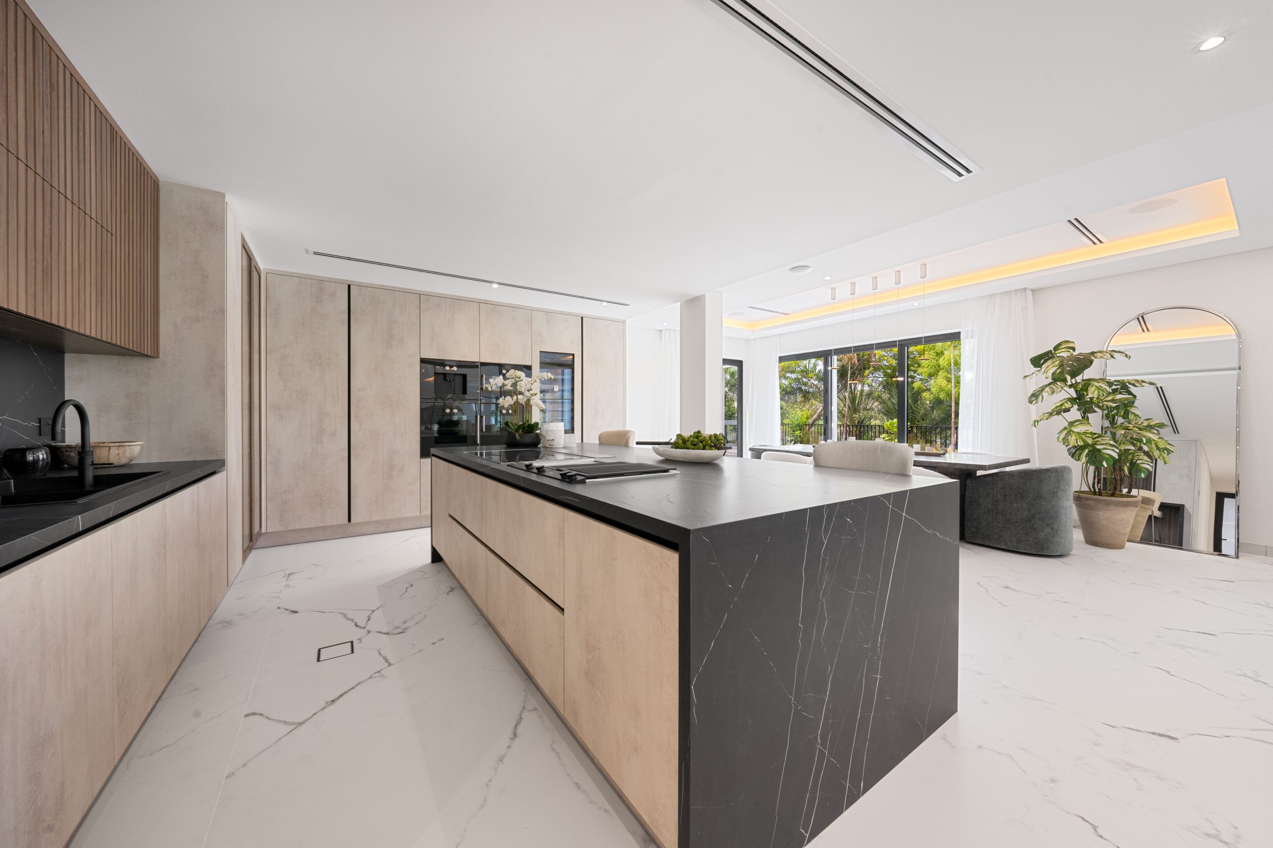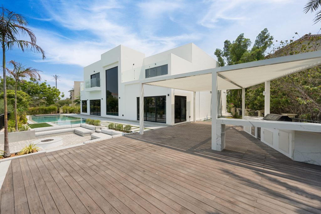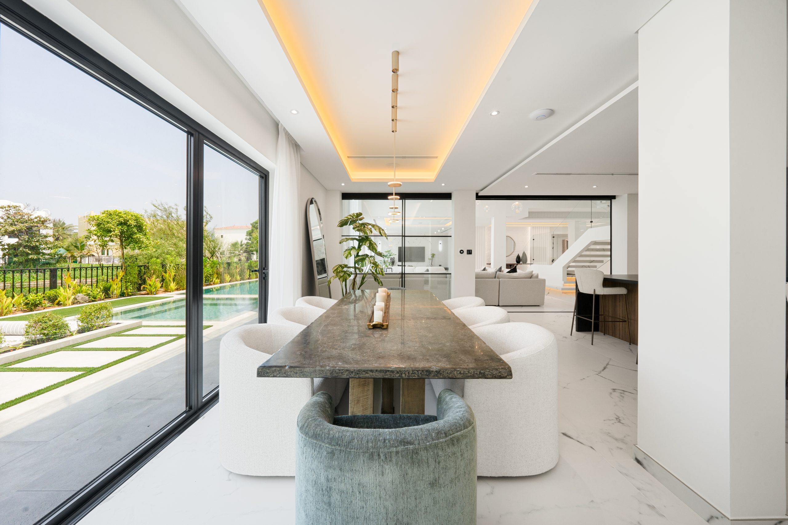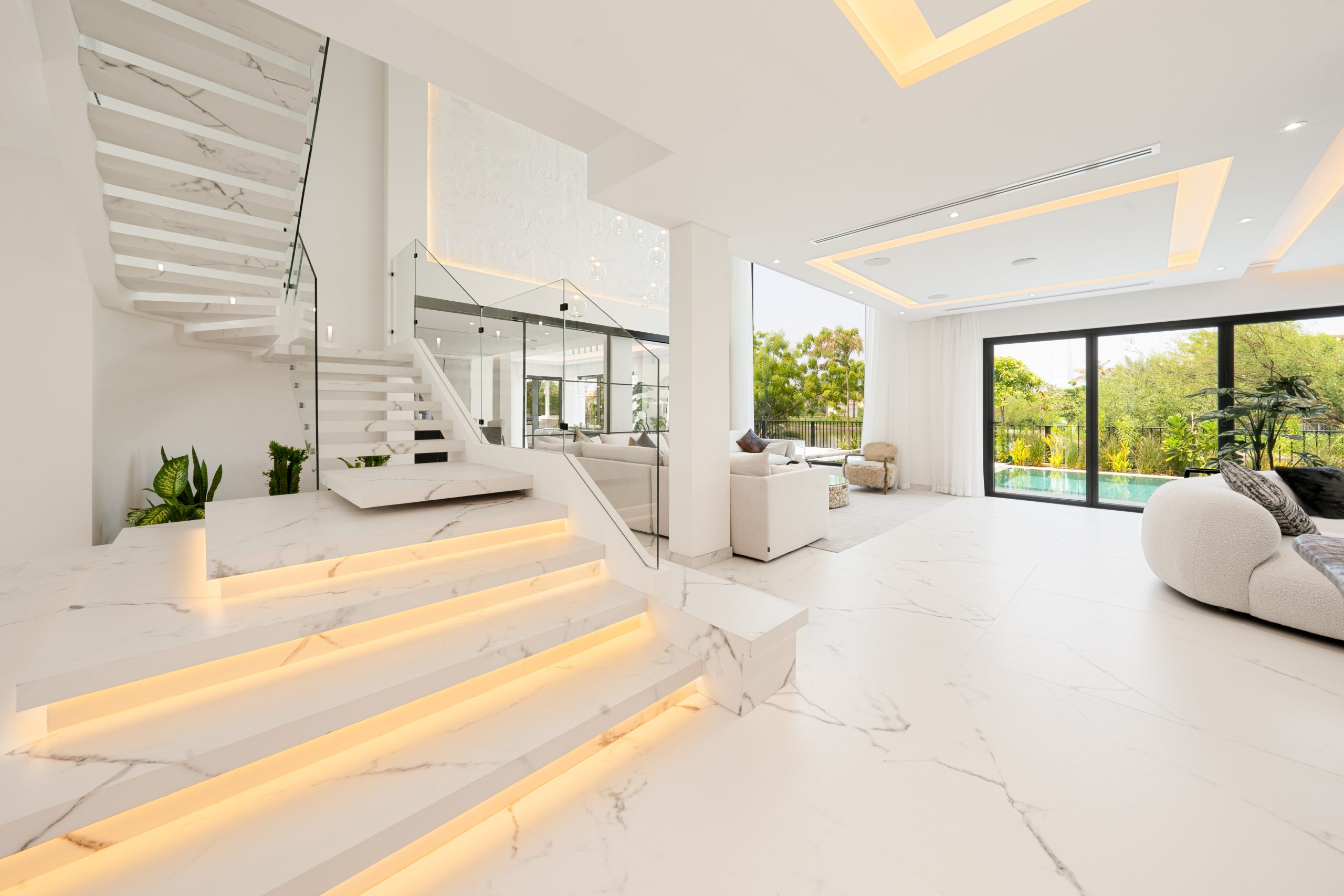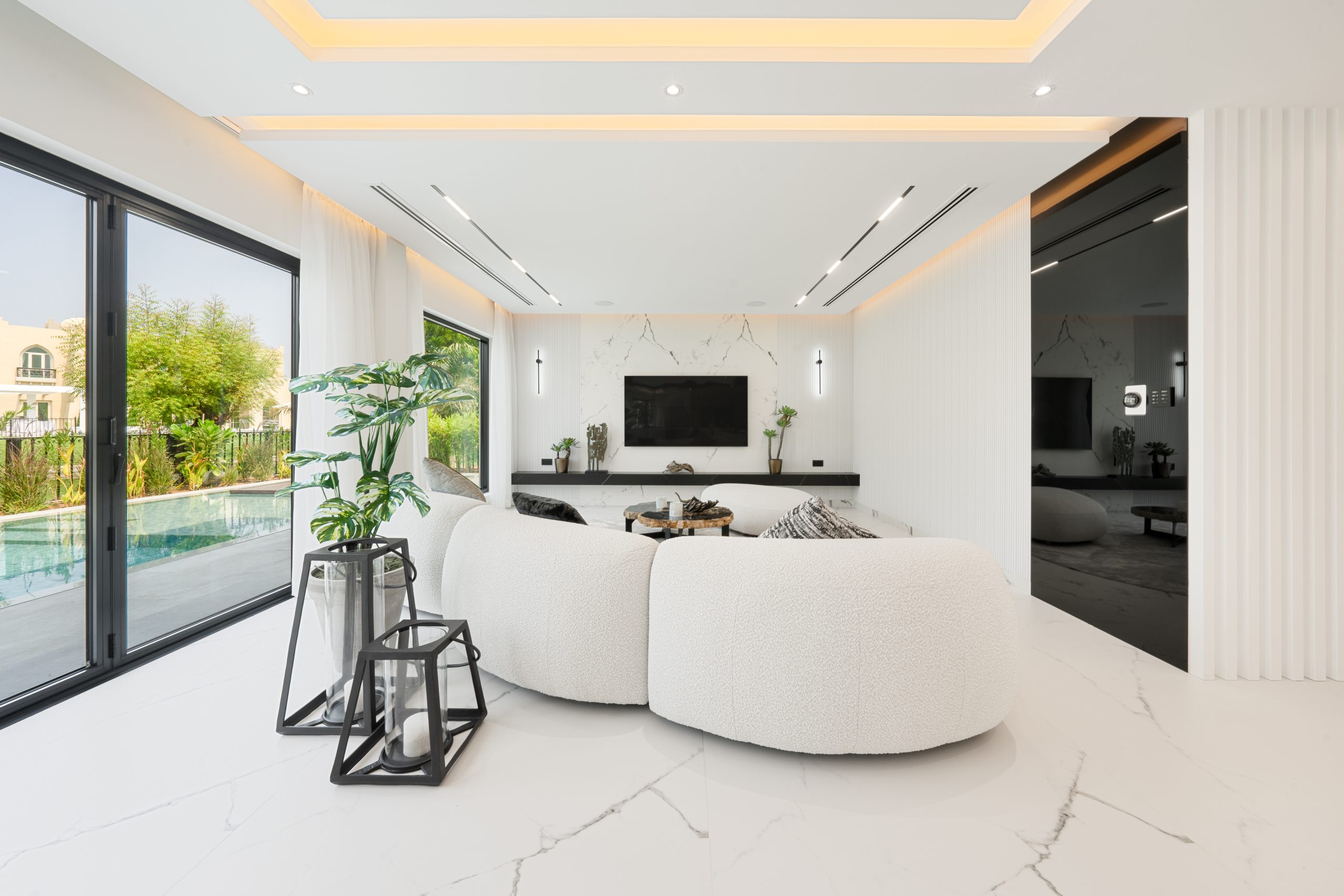 The client sought a renovation that blended modern elegance with traditional charm for their 5-bedroom standalone villa. The renovation’s centrepiece was a spacious, open-plan living and dining area designed to be family-friendly. Enhancements included a games room with a home cinema, pool table, and bar. The villa’s standout feature was its unique circular swimming pool, complete with a swim-up bar and an entertainment area centred around a fire pit.