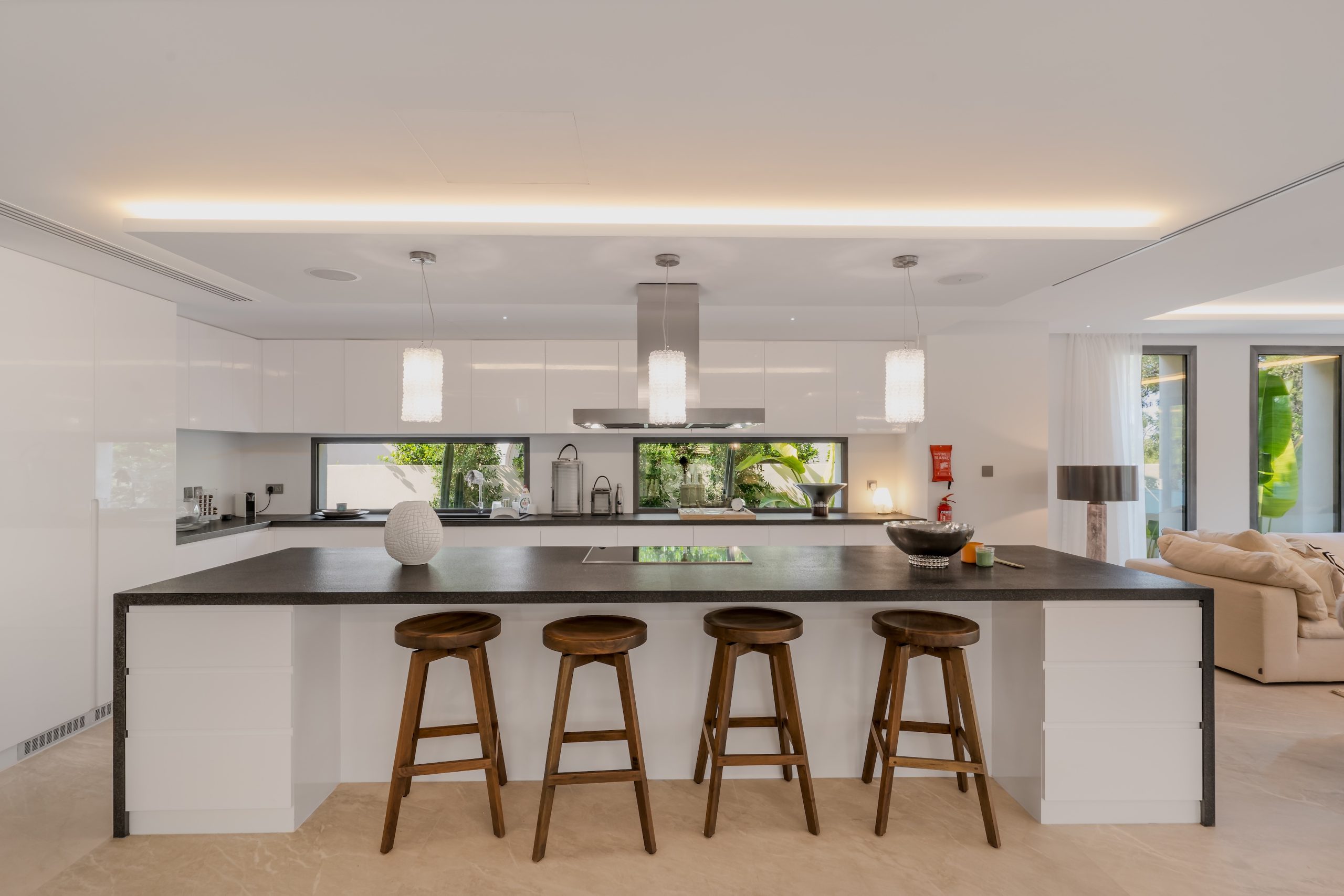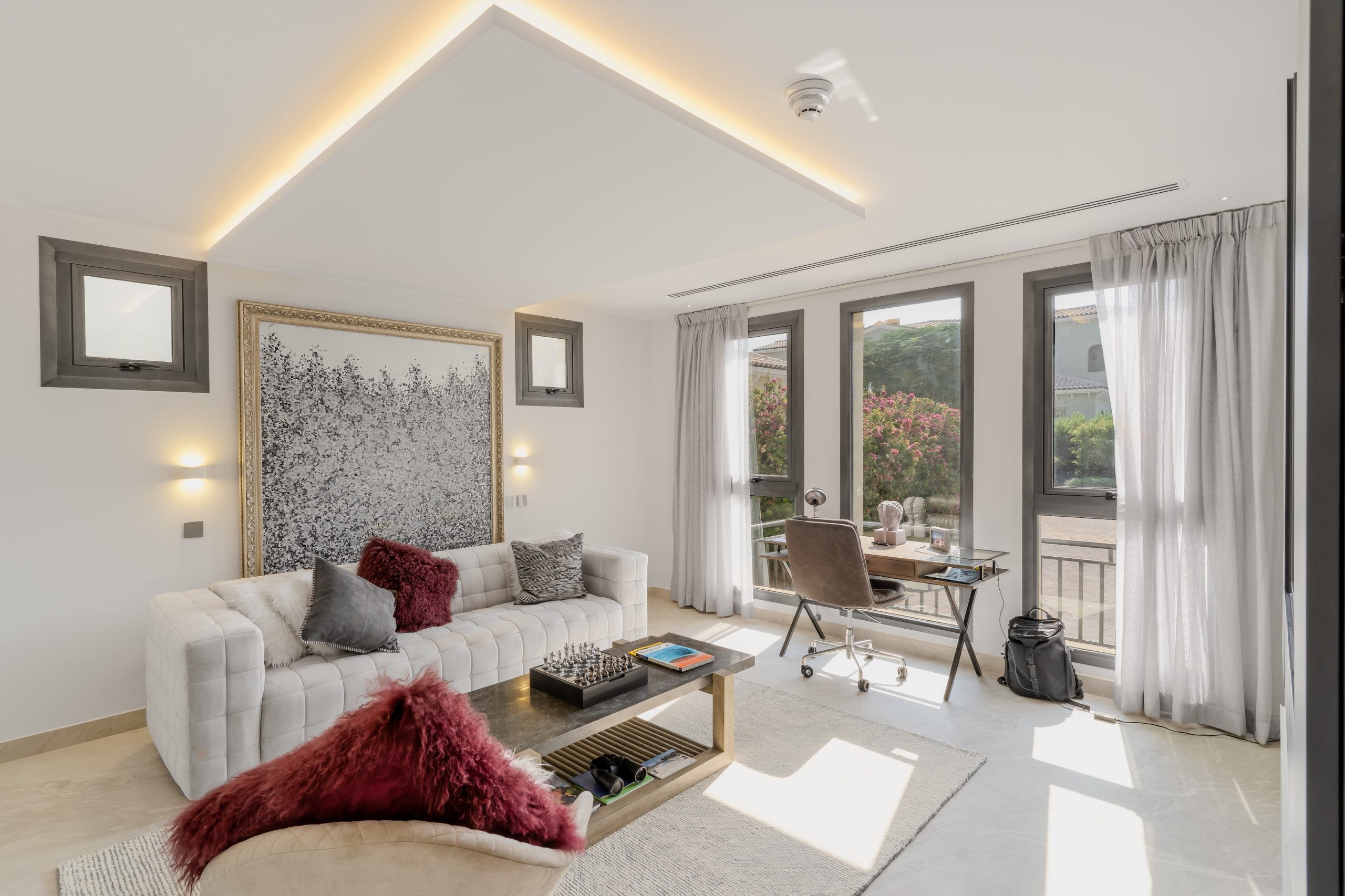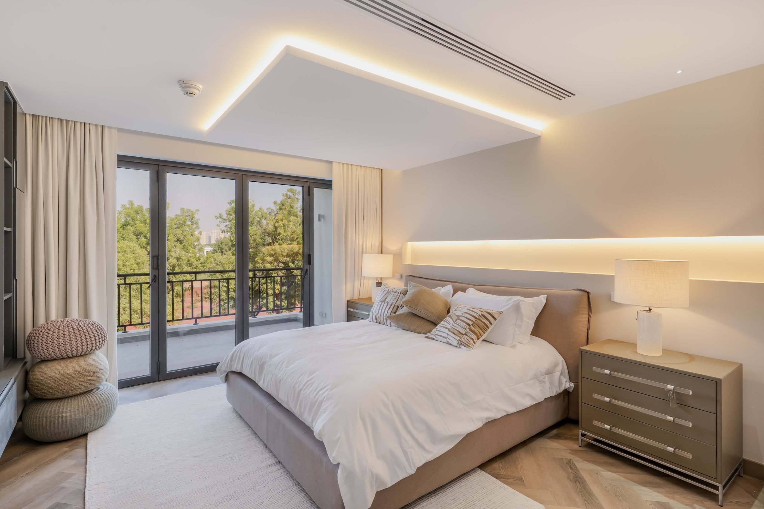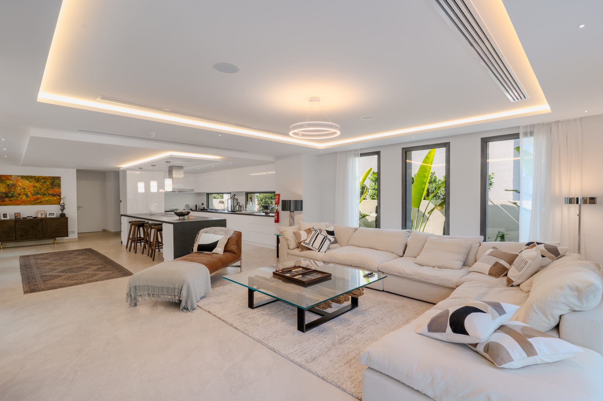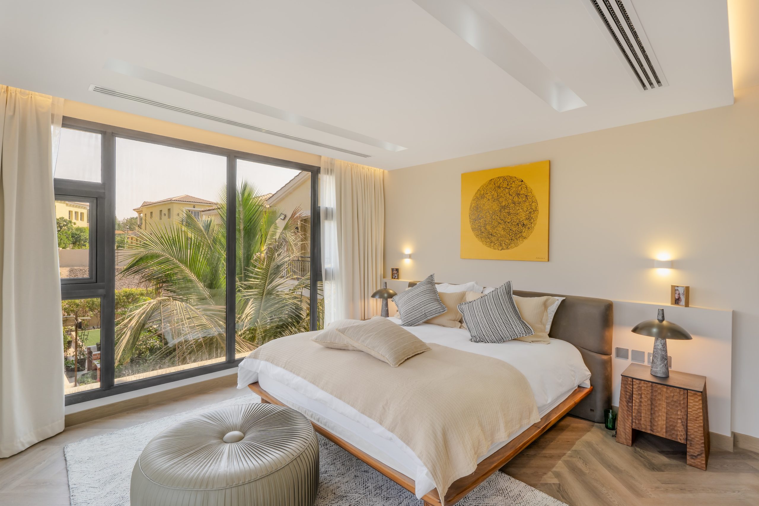 The client sought a renovation that blended modern elegance with traditional charm for their 5-bedroom standalone villa. The renovation’s centrepiece was a spacious, open-plan living and dining area designed to be family-friendly. Enhancements included a games room with a home cinema, pool table, and bar. The villa’s standout feature was its unique circular swimming pool, complete with a swim-up bar and an entertainment area centred around a fire pit.