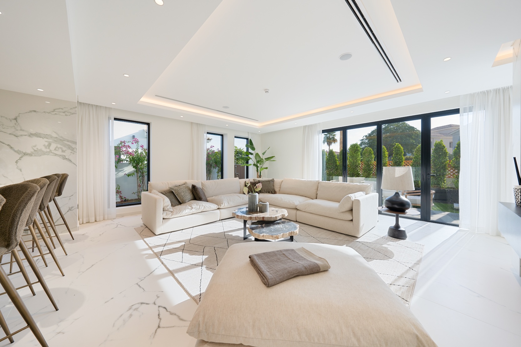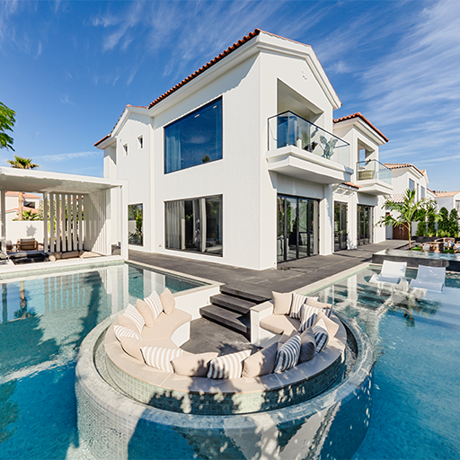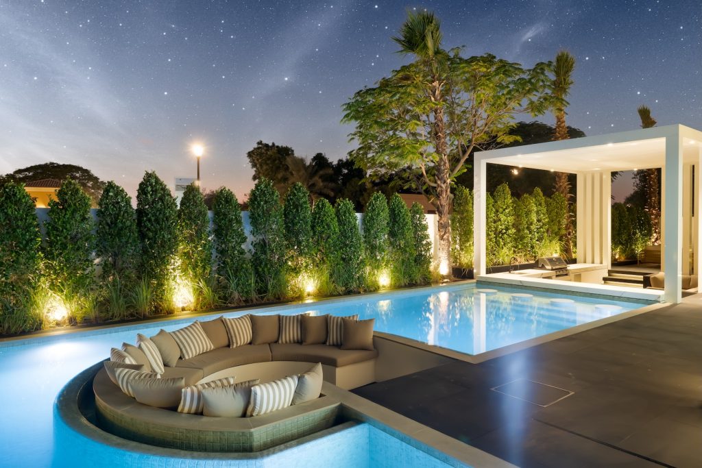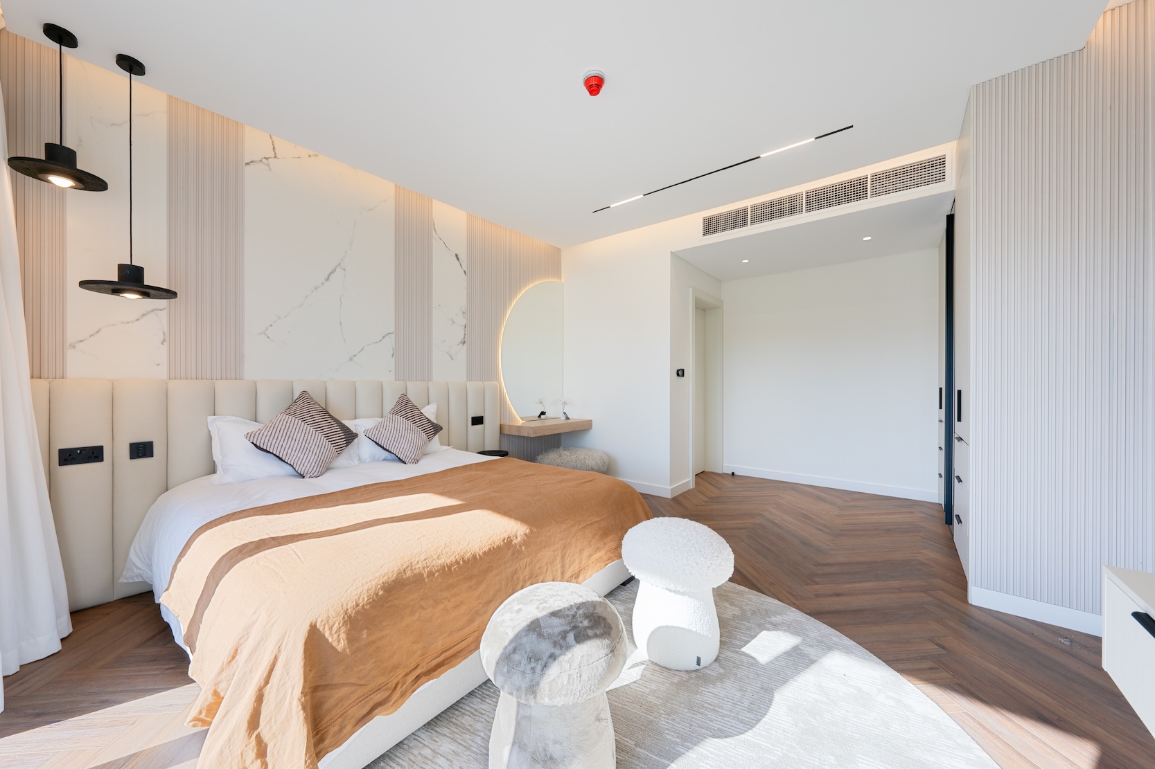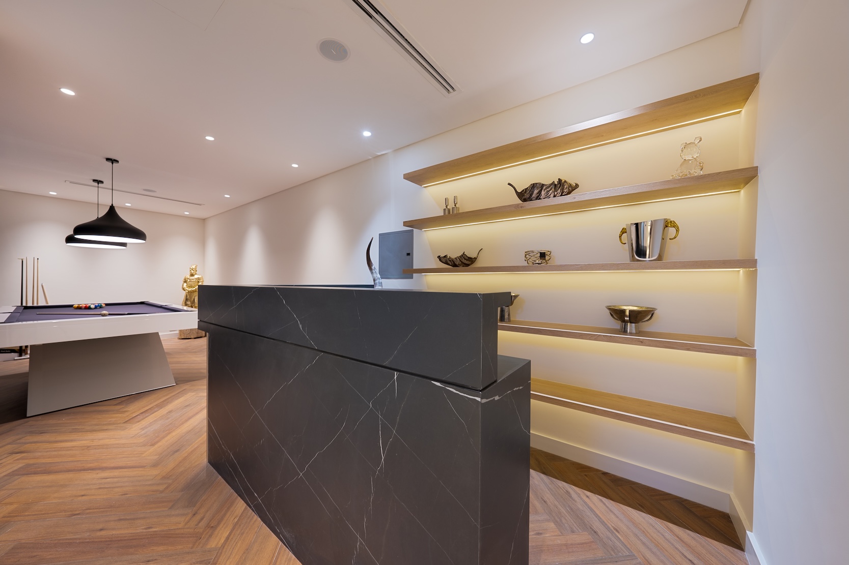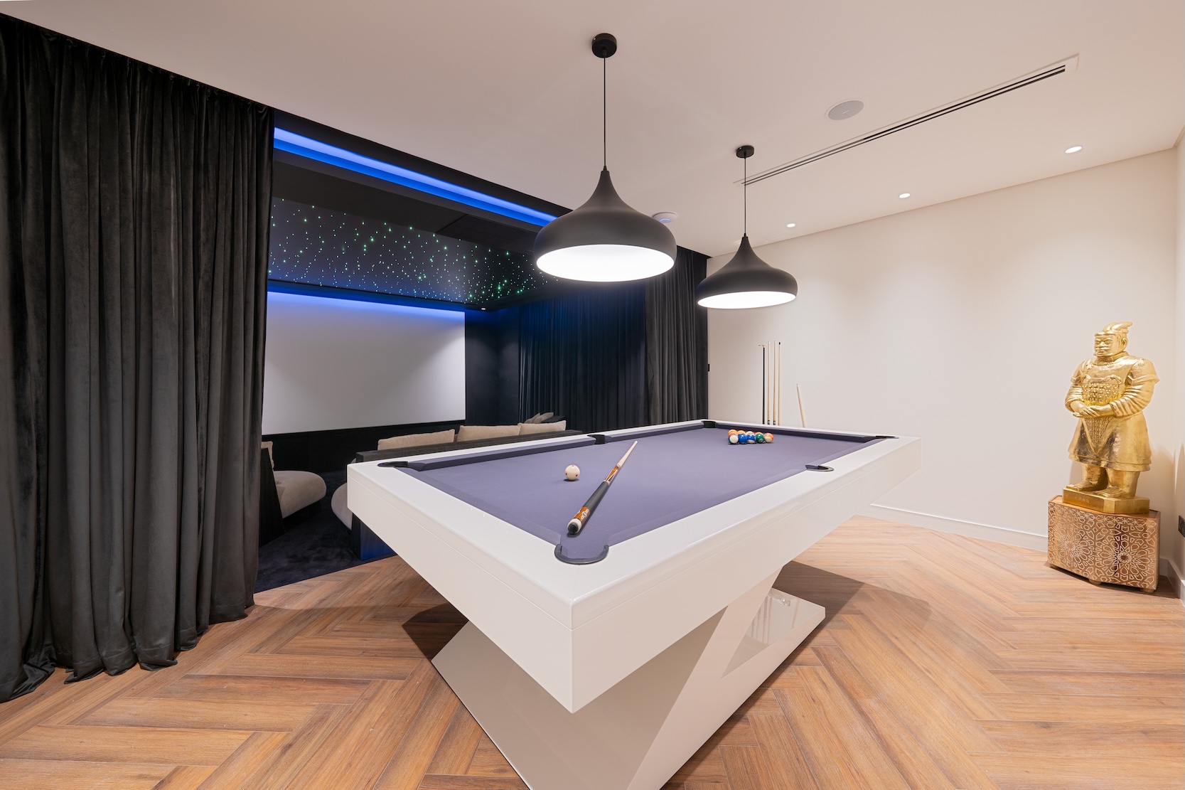 The client sought a renovation that blended modern elegance with traditional charm for their 5-bedroom standalone villa. The renovation’s centrepiece was a spacious, open-plan living and dining area designed to be family-friendly. Enhancements included a games room with a home cinema, pool table, and bar. The villa’s standout feature was its unique circular swimming pool, complete with a swim-up bar and an entertainment area centred around a fire pit.