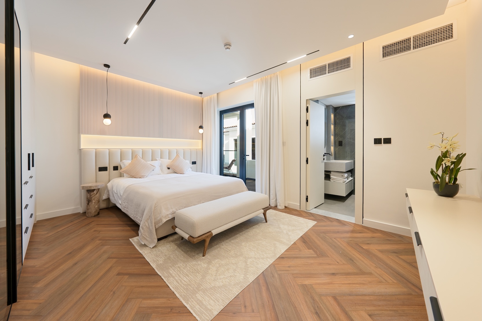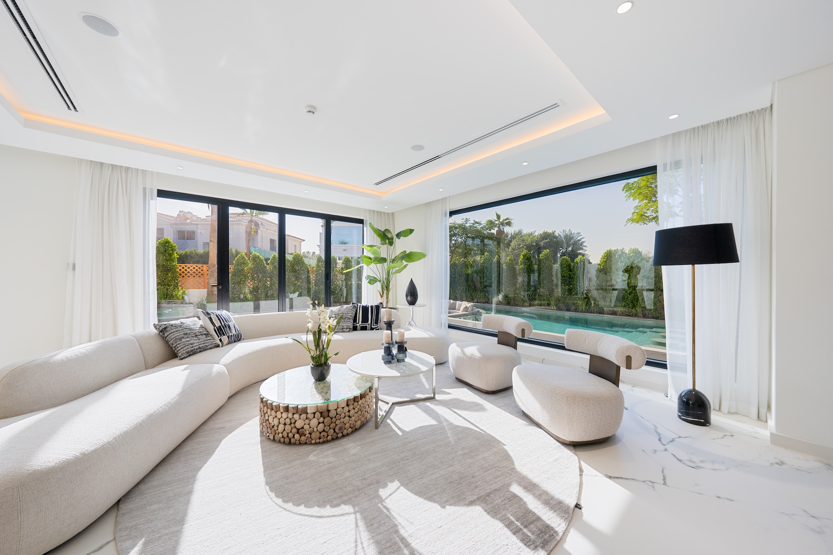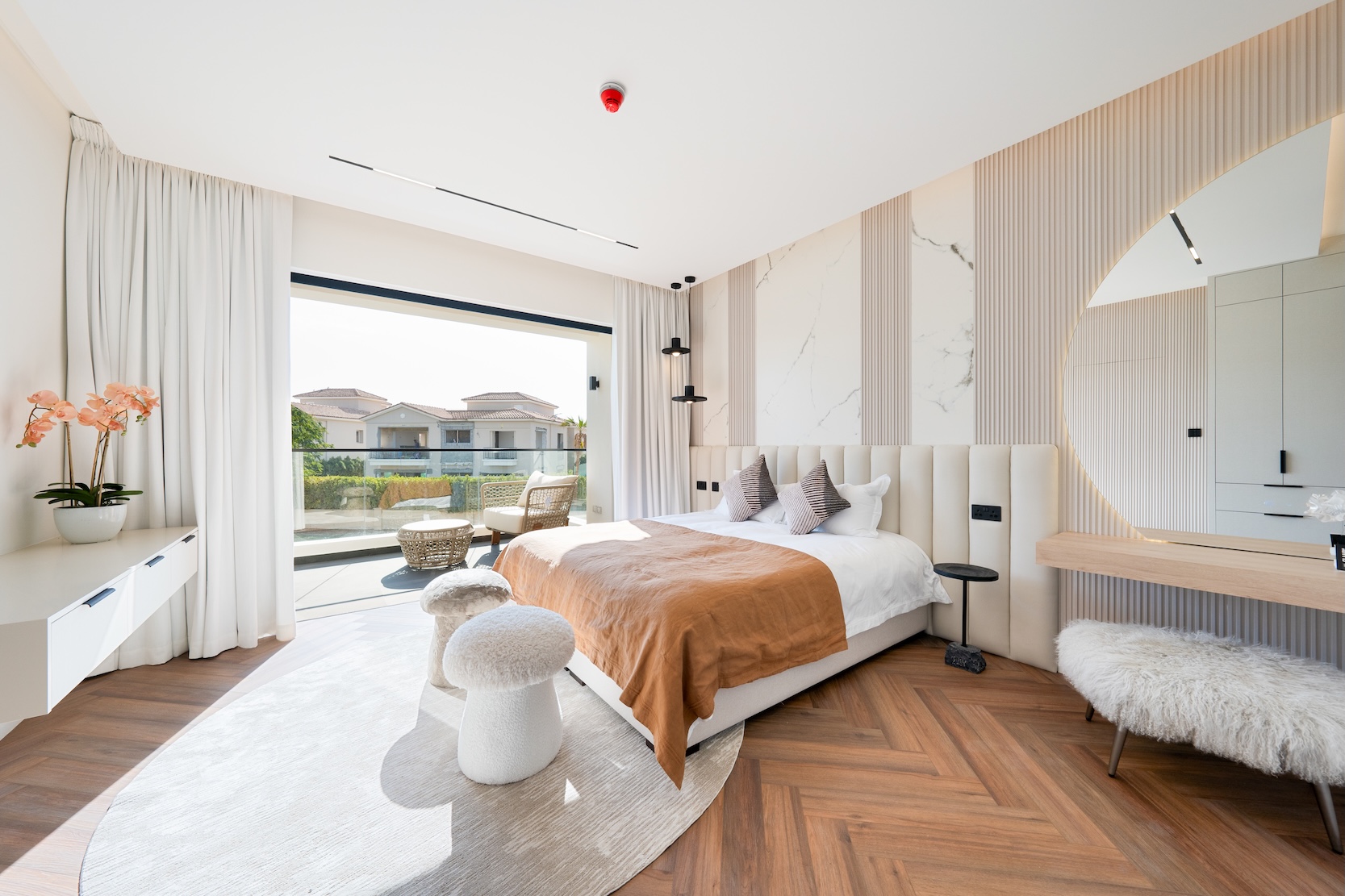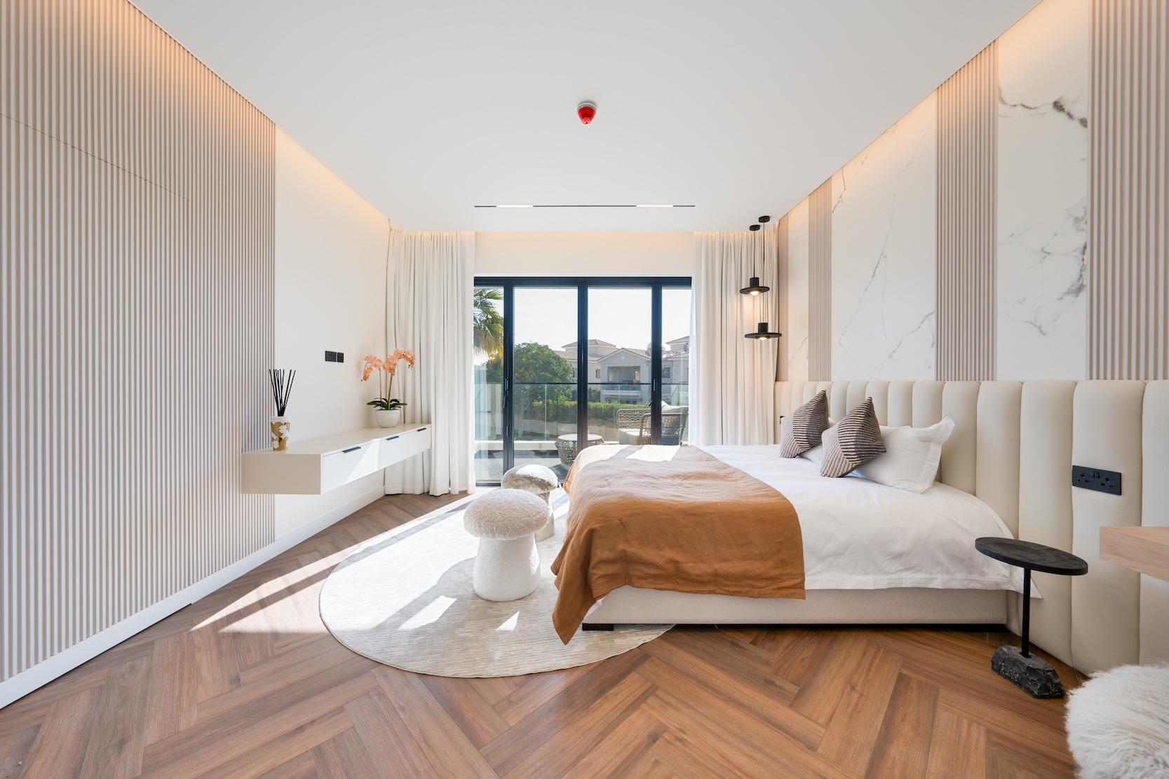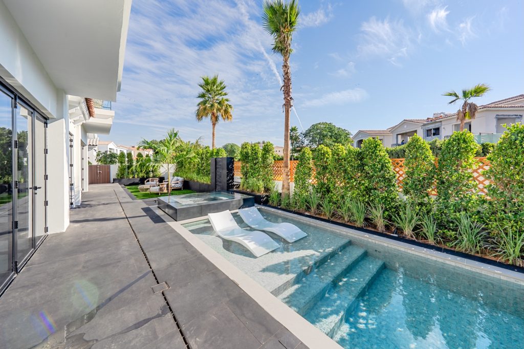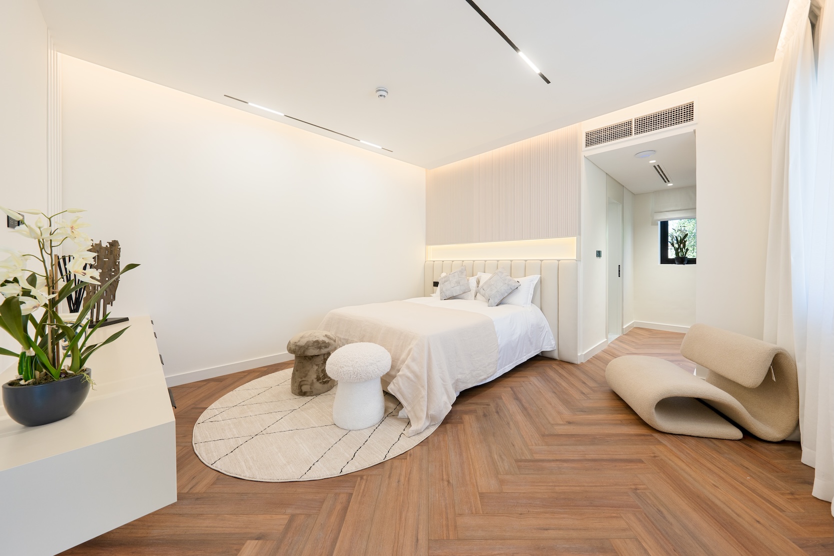 The client sought a renovation that blended modern elegance with traditional charm for their 5-bedroom standalone villa. The renovation’s centrepiece was a spacious, open-plan living and dining area designed to be family-friendly. Enhancements included a games room with a home cinema, pool table, and bar. The villa’s standout feature was its unique circular swimming pool, complete with a swim-up bar and an entertainment area centred around a fire pit.