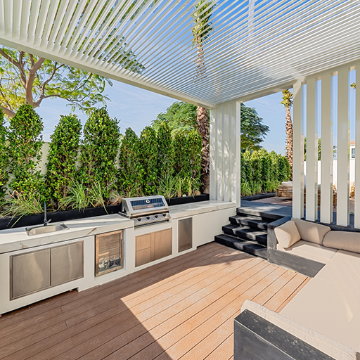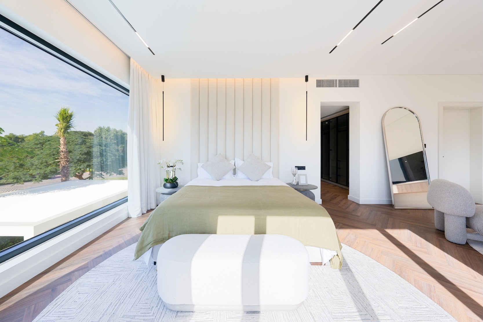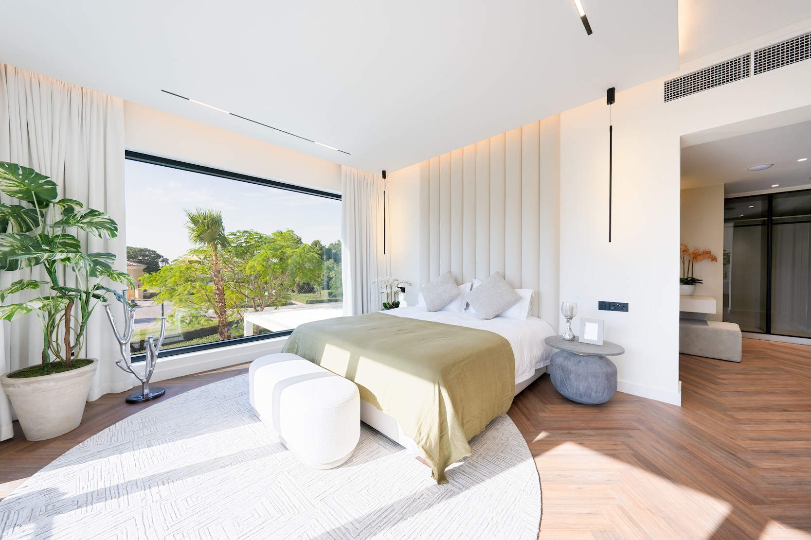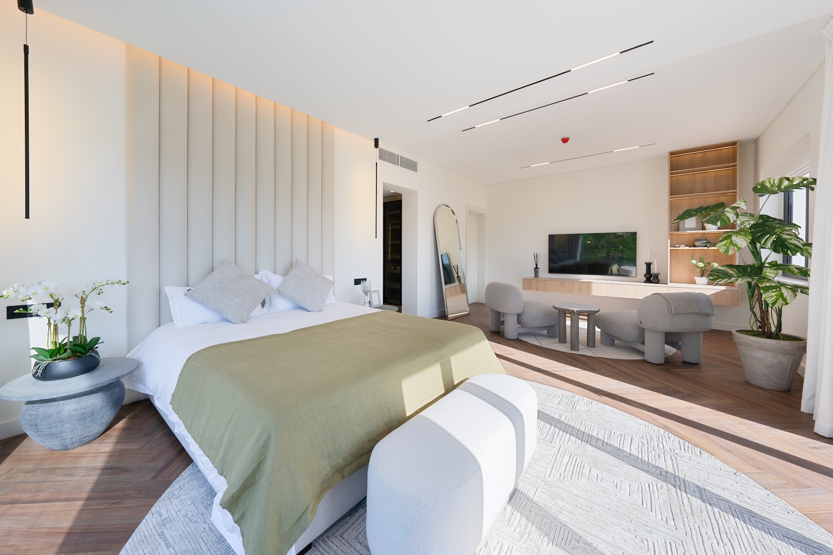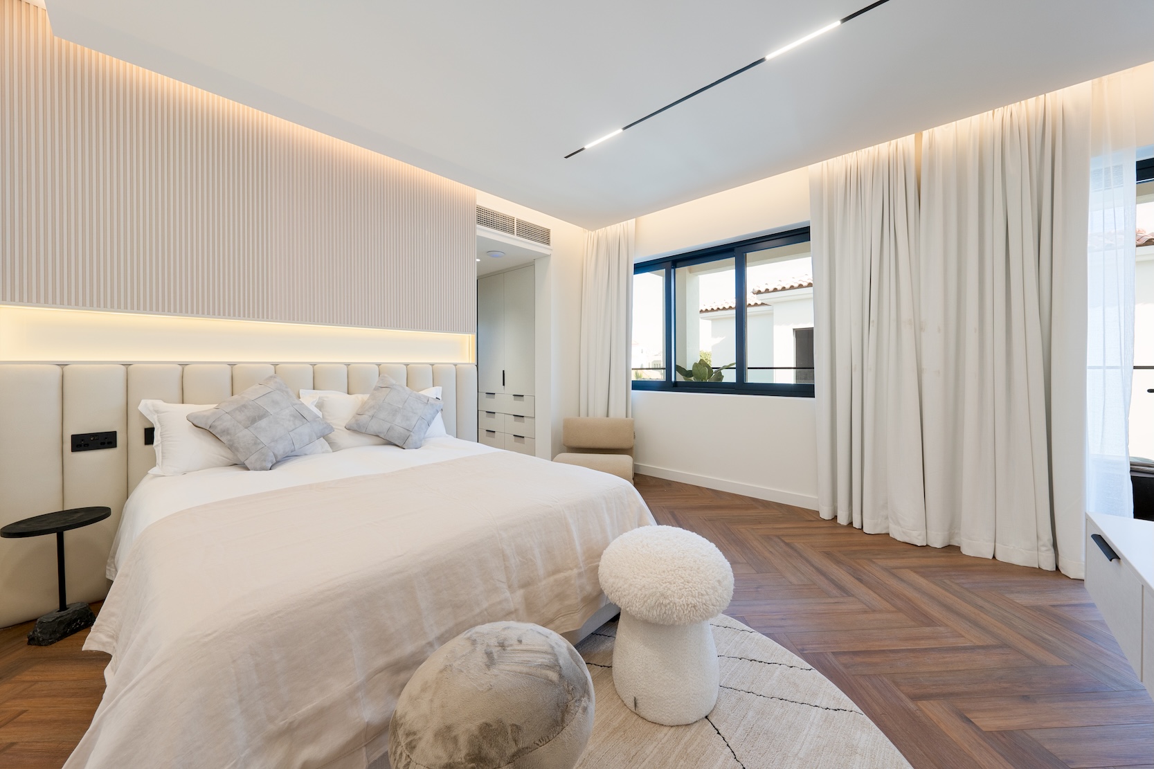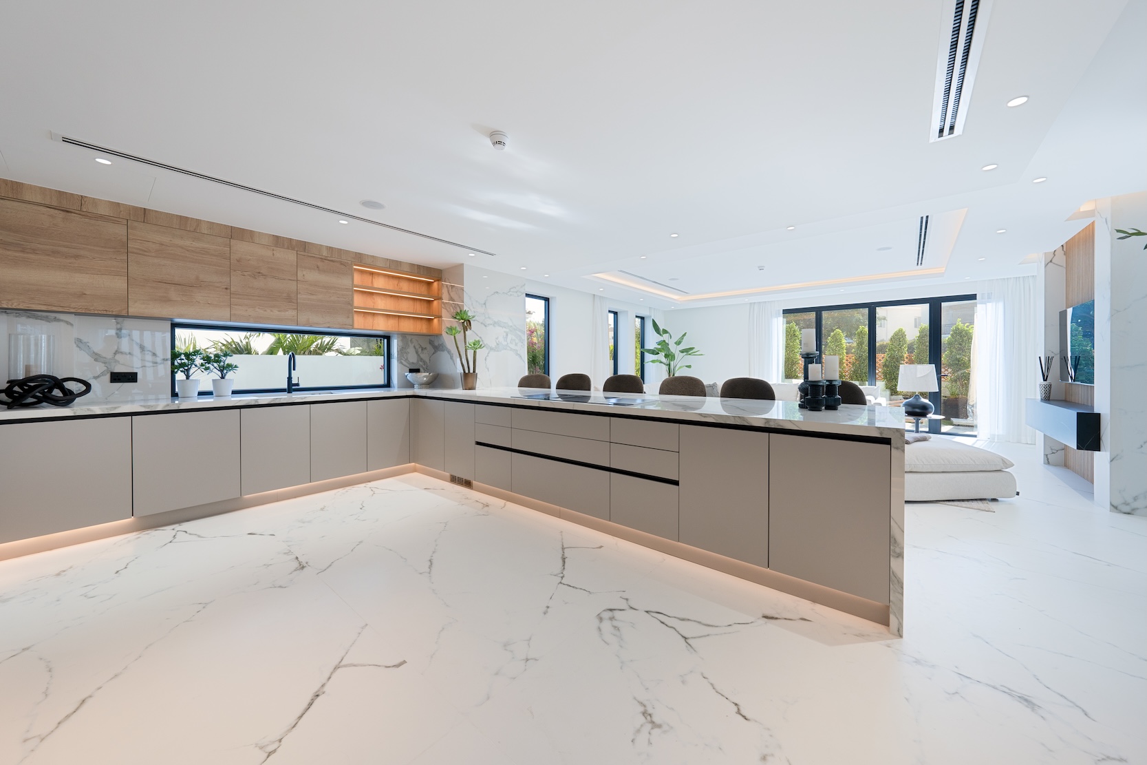 The client sought a renovation that blended modern elegance with traditional charm for their 5-bedroom standalone villa. The renovation’s centrepiece was a spacious, open-plan living and dining area designed to be family-friendly. Enhancements included a games room with a home cinema, pool table, and bar. The villa’s standout feature was its unique circular swimming pool, complete with a swim-up bar and an entertainment area centred around a fire pit.