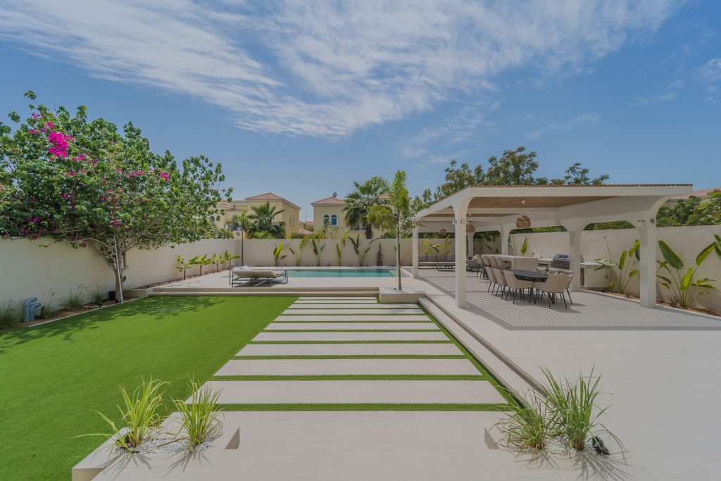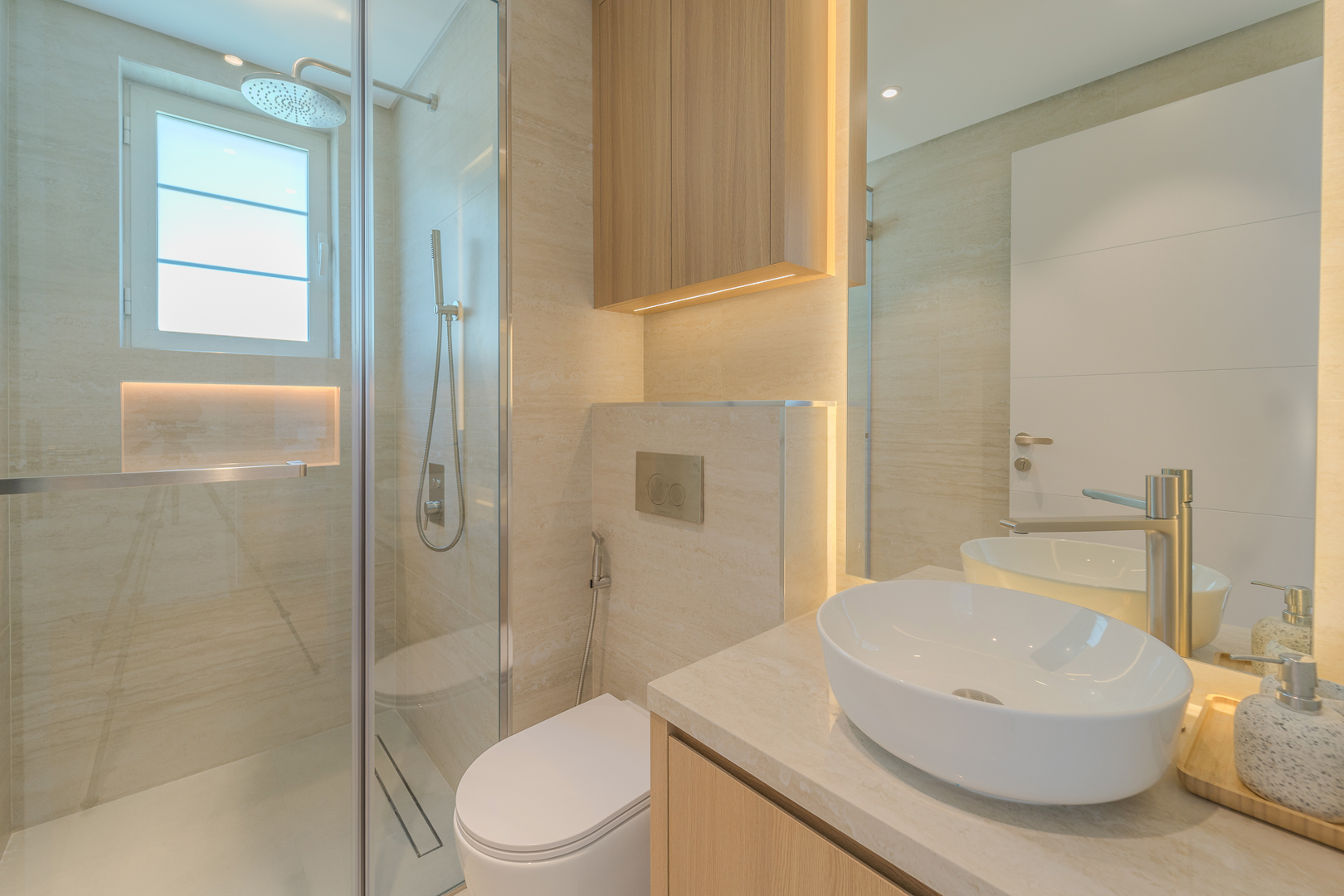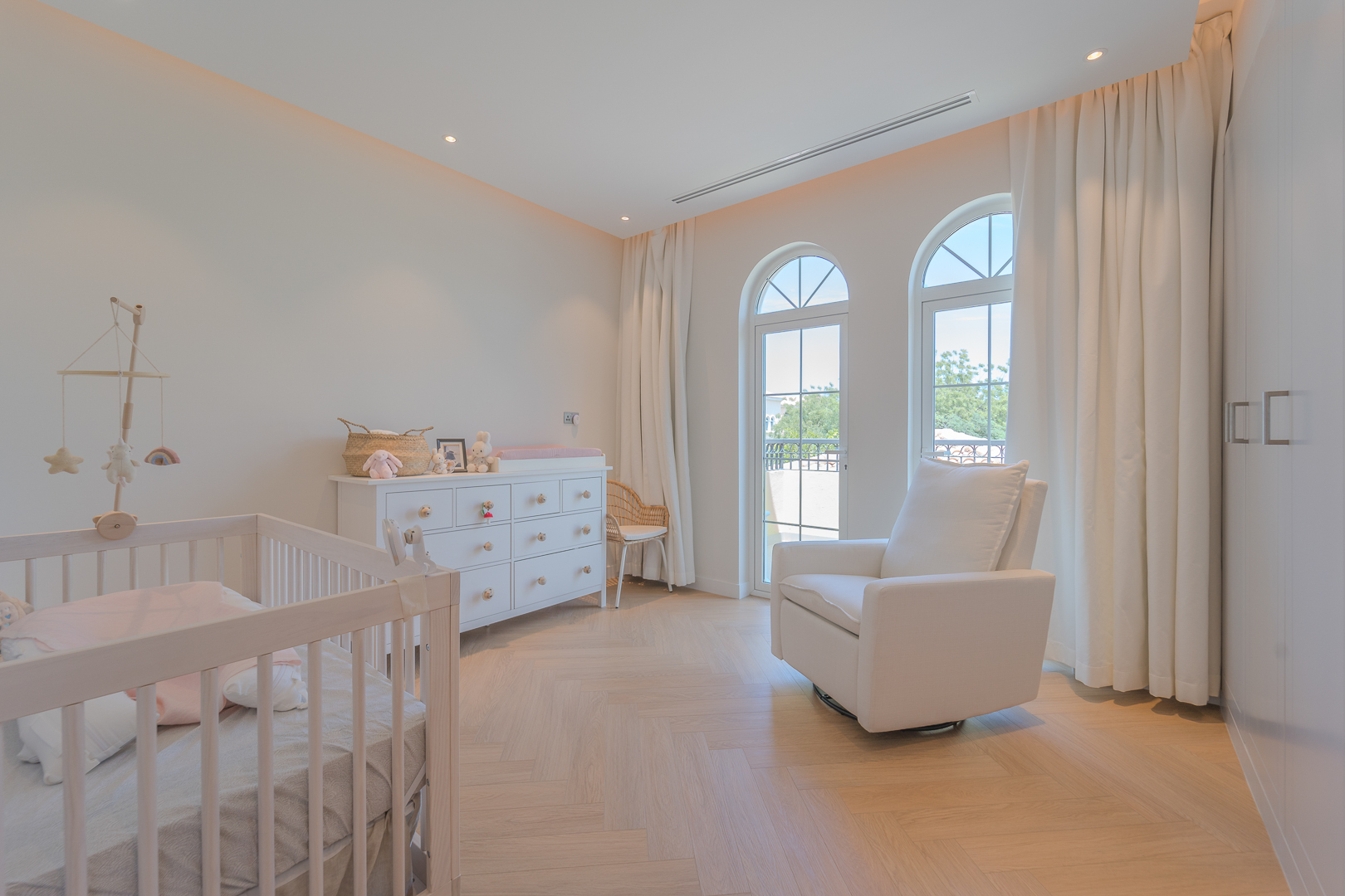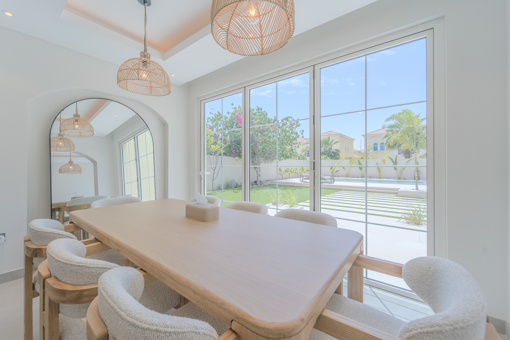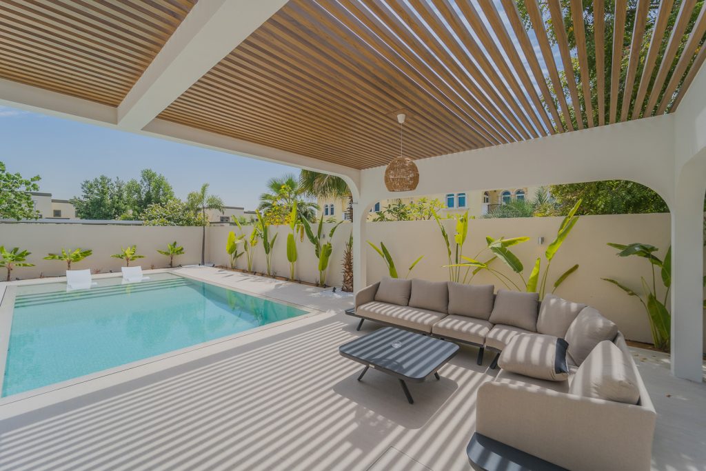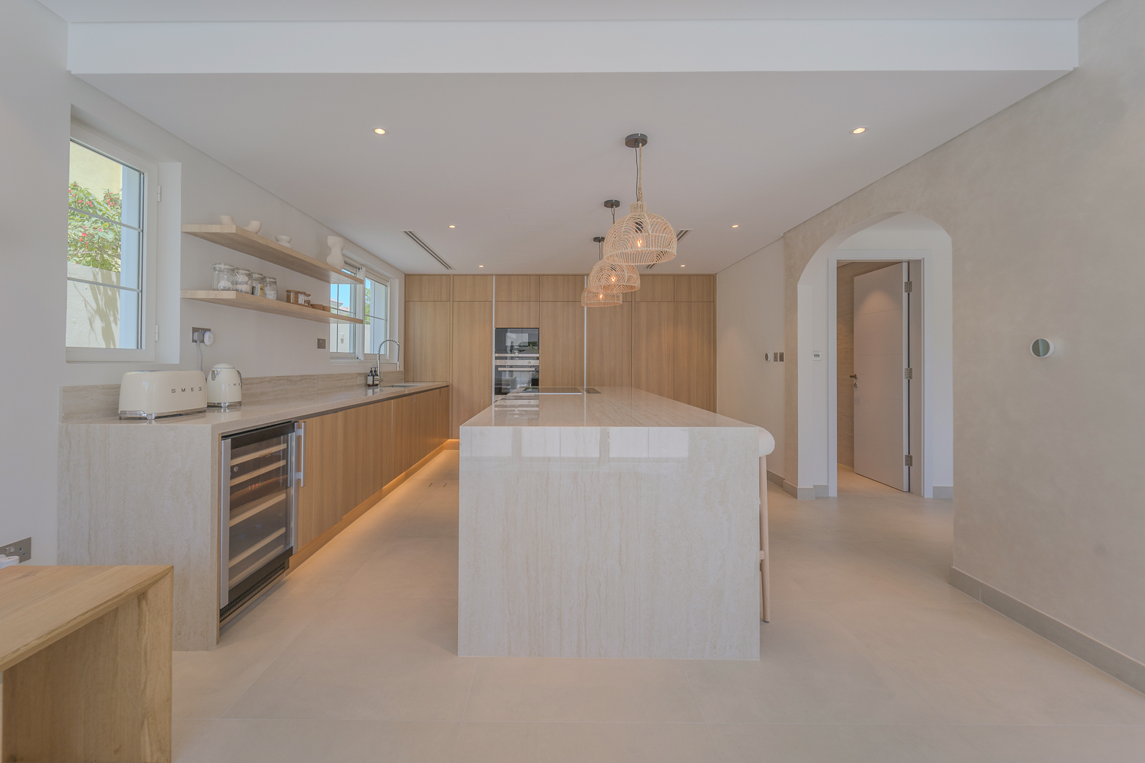 The client sought a renovation that blended modern elegance with traditional charm for their 5-bedroom standalone villa. The renovation’s centrepiece was a spacious, open-plan living and dining area designed to be family-friendly. Enhancements included a games room with a home cinema, pool table, and bar. The villa’s standout feature was its unique circular swimming pool, complete with a swim-up bar and an entertainment area centred around a fire pit.