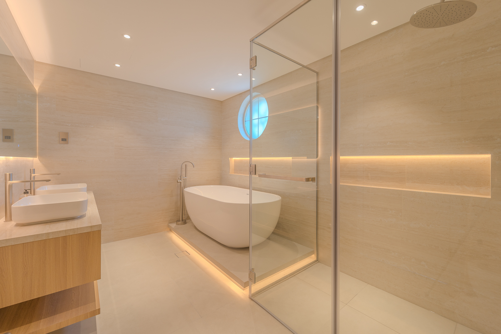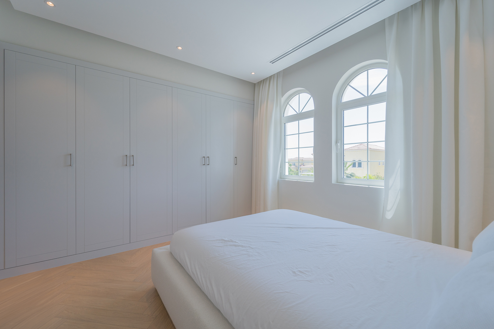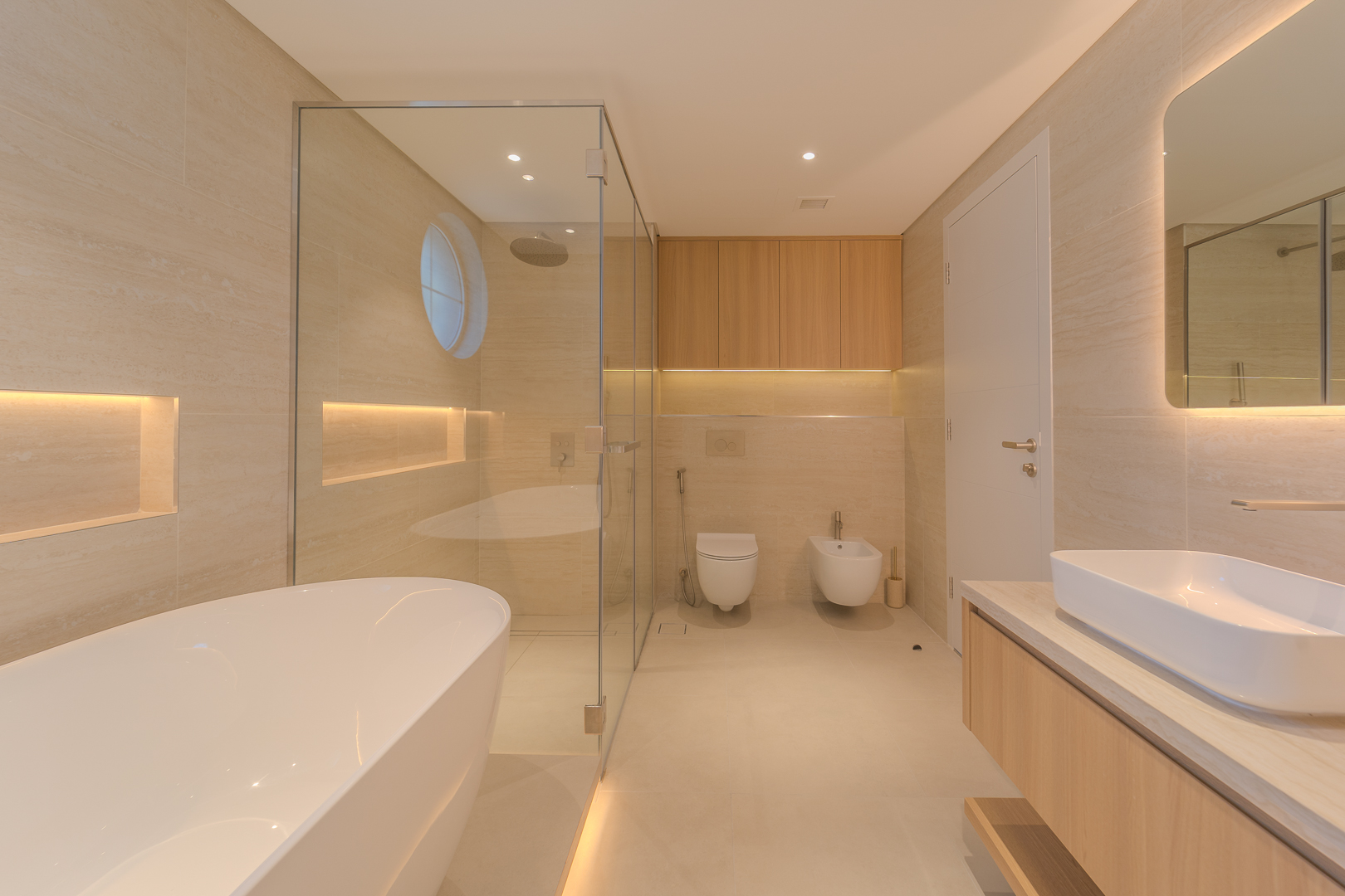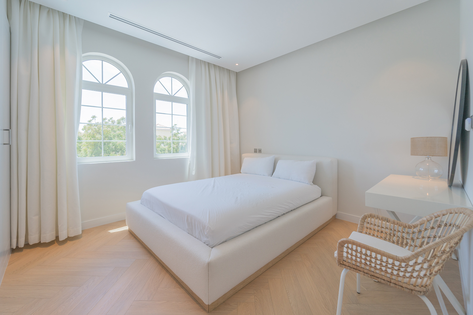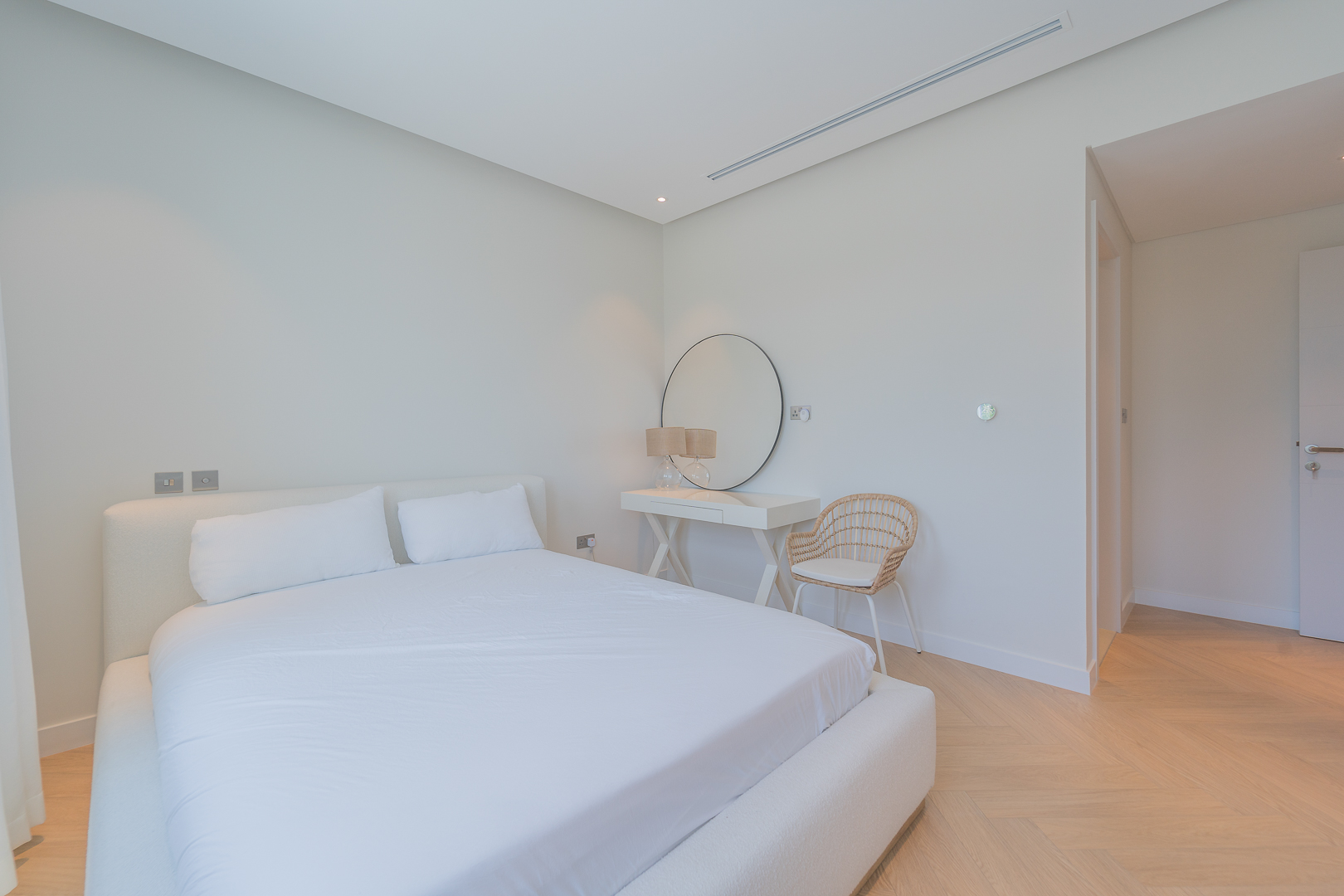 The client sought a renovation that blended modern elegance with traditional charm for their 5-bedroom standalone villa. The renovation’s centrepiece was a spacious, open-plan living and dining area designed to be family-friendly. Enhancements included a games room with a home cinema, pool table, and bar. The villa’s standout feature was its unique circular swimming pool, complete with a swim-up bar and an entertainment area centred around a fire pit.